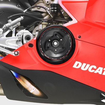 ครอบคลัชใสใหม่ล่าสุดจาก Rizoma ฝาครอบคลัตช์อลูมิเนียมไร้กรอบ (Bordless Aluminum Cover) มาพร้อมกระจก Lexan เทคโนโลยีสูงทำให้เห็นกลไกภายใน เสริมให้รถสวยมีมิติมากขึ้น ครอบคลัชใสมาเป็นชุดครบเซตมีให้เลือก 3 สี