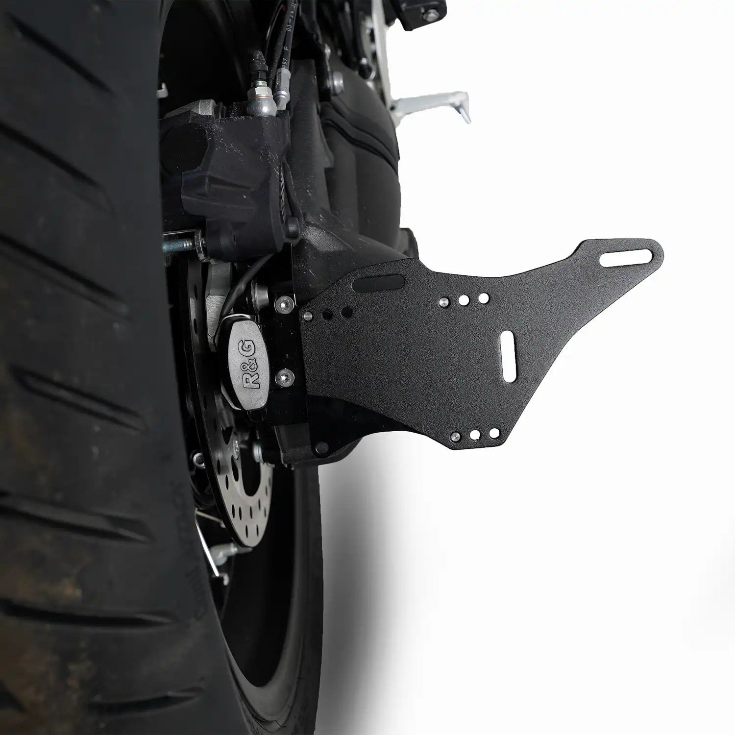 As used by Performance Bikes, Fast Bikes, Superbike Magazine and MCN to name but a few. The R&G Licence Plate Holder has been designed to replace the very large, original plastic licence plate holder and improve the lines of the modern machine. The licence plate holder comes with all necessary holes drilled and all the fixtures and fitting you may need. Where necessary, the Tail Tidy comes with a neat little built-in licence plate light.
